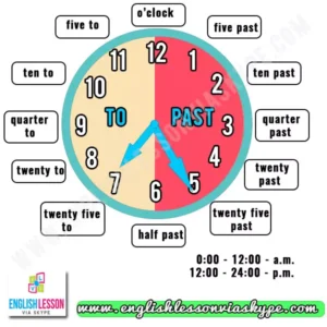 2) Say the minutes first and then the hour. (Minutes + PAST / TO + Hour)