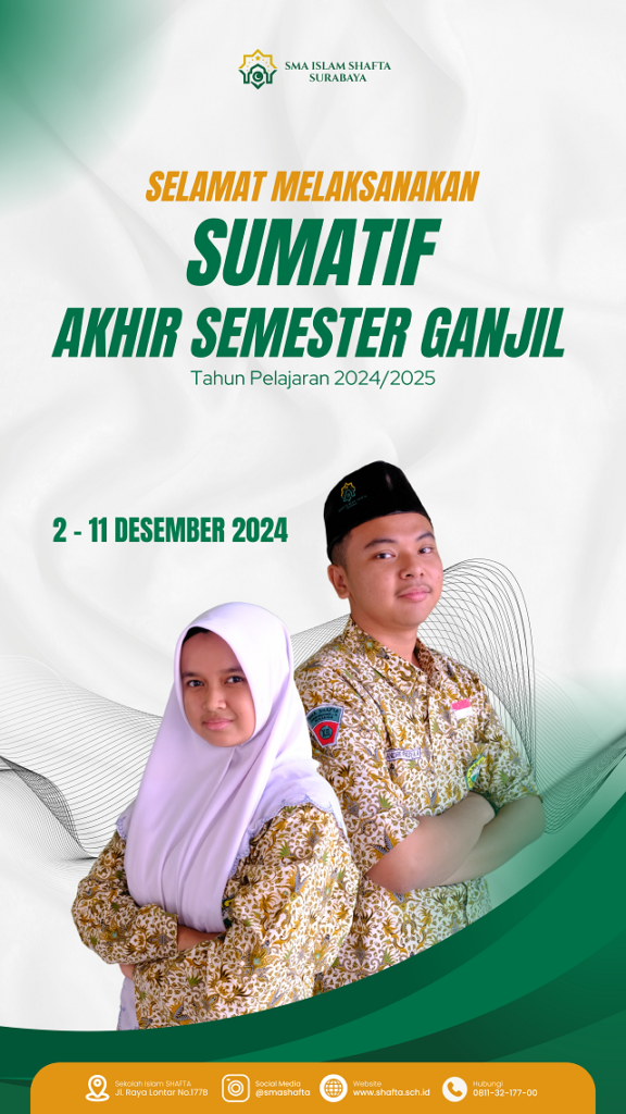 TOKEN SUMATIF AKHIR SEMESTER (SAS) GANJIL SMA SHAFTA TAHUN PELAJARAN 2024-2025 Tanggal Mapel Kelas Token Masuk Senin 2 Desember 2024 B. Indo X YXCPNY-419 PJOK C3L81L-419 B. Indo XI N3B8S1-419 PJOK FN52HT-419 B. Indo XII XWBNFL-419 PJOK MM8EZP-419 Tanggal Mapel Kelas Token Masuk Selasa 3 Desember 2024 Matematika X TQ3TDU-419 Seni Budaya Z764TA-419 Matematika XI […]