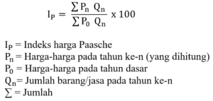• Paasche. Metode Paasche merupakan perhitungan angka indeks tertimbang dengan faktor penimbang terletak pada tahun yang sedang dihitung. Rumus metode Paasche: