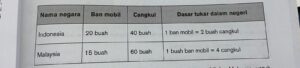 - Berikut adalah tabel produksi dua negara dengan menggunakan sumber daya ekonomi tertentu. Hitunglah keuntungan Indonesia dalam menjual 10 ban mobil ke Malaysia untuk mendapatkan cangkul.